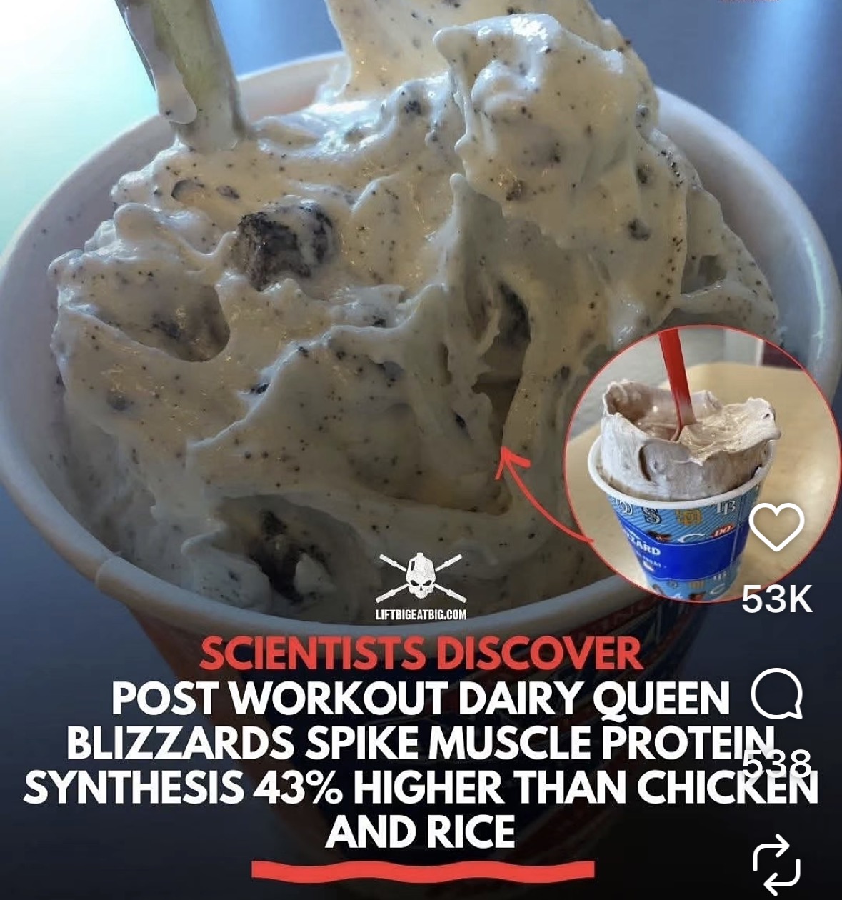 In early 2026, a viral social media post claimed that a “Harvard and Mayo Clinic study” found eating a Dairy Queen Blizzard post-workout led to 43% higher muscle protein synthesis (MPS) compared to a traditional recovery meal like chicken and rice.
